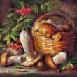Огненные грозди рябины - настоящее украшение осени. И мы тоже не оставим без внимания этот сюжет, нарисуем яркую рябину в плетеной корзине, стоящей в лесу.