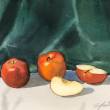 Напишем натюрморт с сочными яблоками на зеленом фоне.