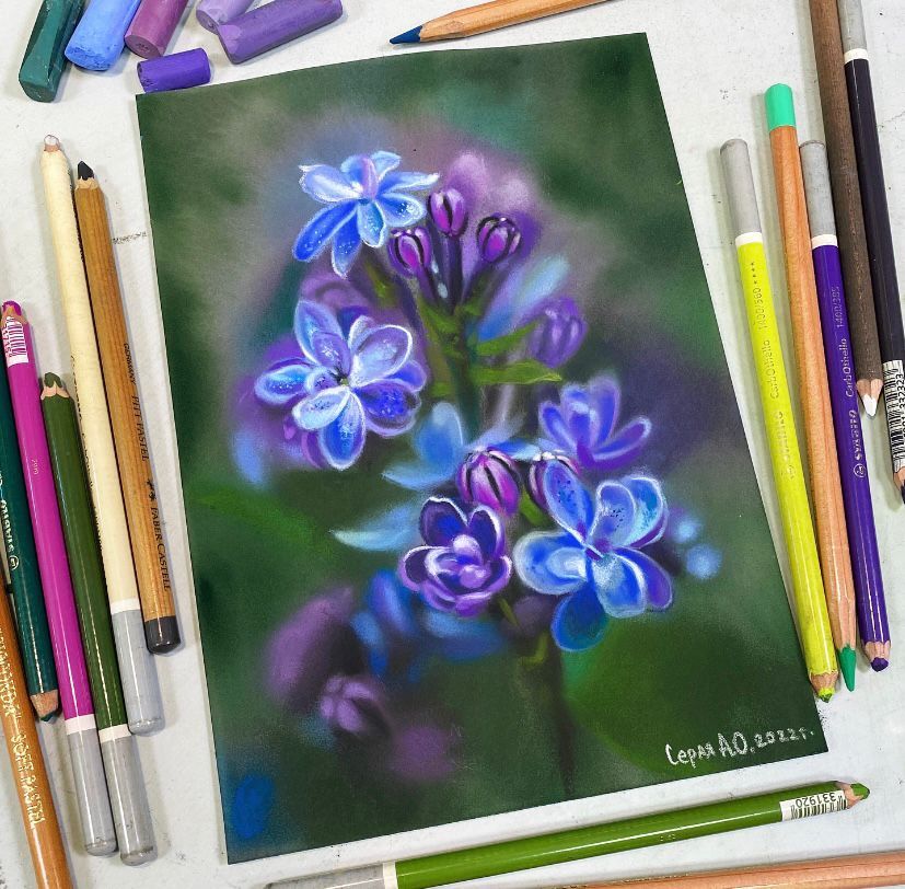 Мастер-класс "Сирень" Анастасия Серая. Смешанная техника: акварельный подмалевок+сухая пастель