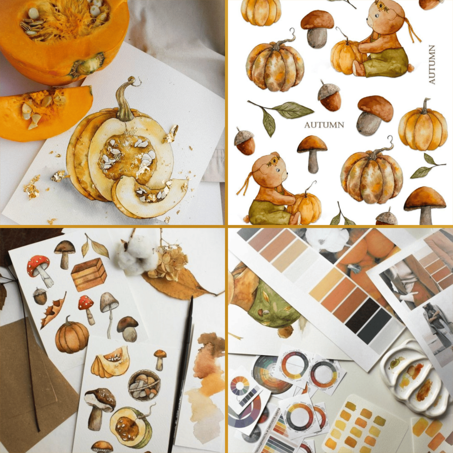 - 5 урок: Создание предметов для стикеров. В этом уроке вы узнаете правила создания стикеров, как верно построить предметную и цветовую композицию, как подготовить рисунок к сканированию и печати. И, конечно, нарисуете еще несколько осенних рисунков!
