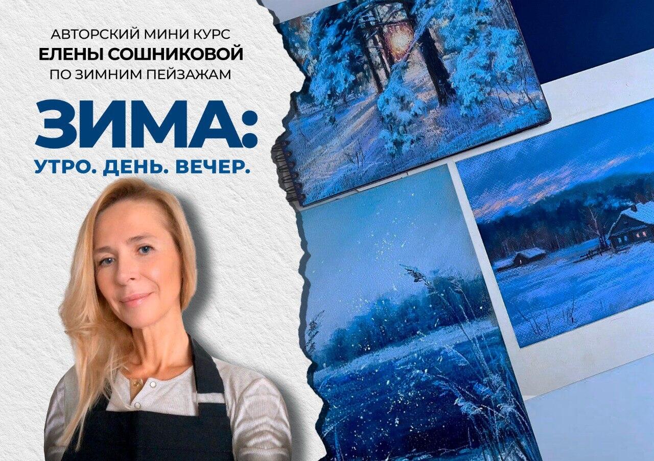 НОВЫЙ АВТОРСКИЙ КУРС от Елены Сошниковой по рисованию Зимнего пейзажа "Утро. День. Вечер" + Поддержка мастера