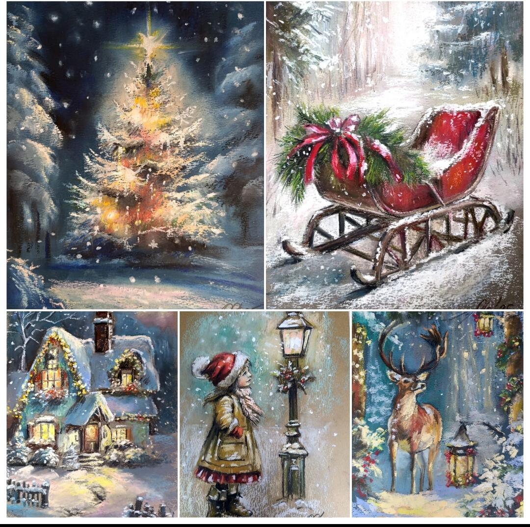 Предзаказ! НОВЫЙ АВТОРСКИЙ КУРС масляной пастелью Ольги Зубенко "Новогодние открытки в стиле Ретро" + чат с мастером.
