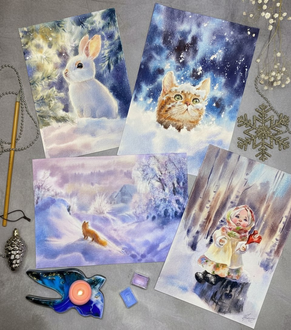 📝Уроки записаны максимально подробно, от карандашного построения до готовой работы, подойдут как для начинающих, так и для тех кто уже работает акварелью, но хочет усовершенствовать свои навыки и насладиться зимней атмосферой!