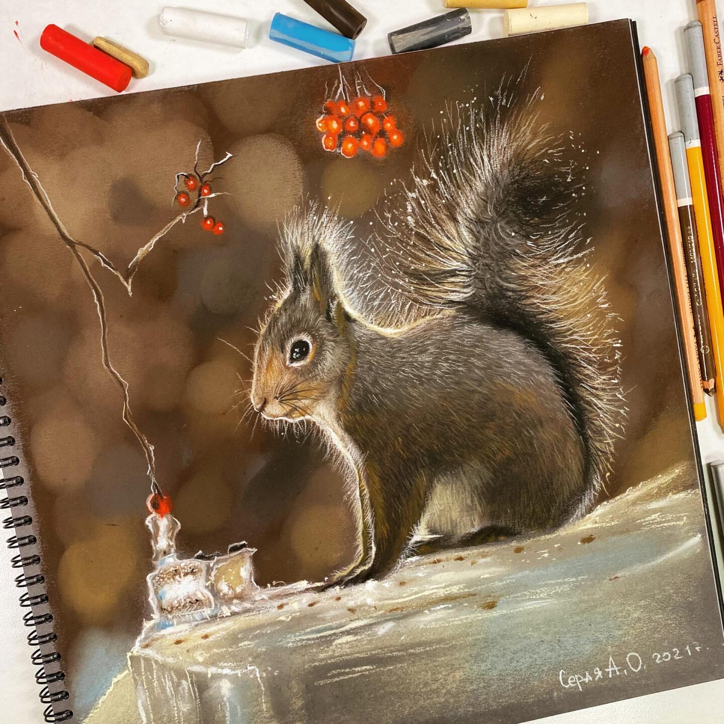 Мы с вами нарисуем пушистую белочку, волшебный натюрморт со статуэткой лошади и чудесный горный пейзаж с потрясающим закатом!